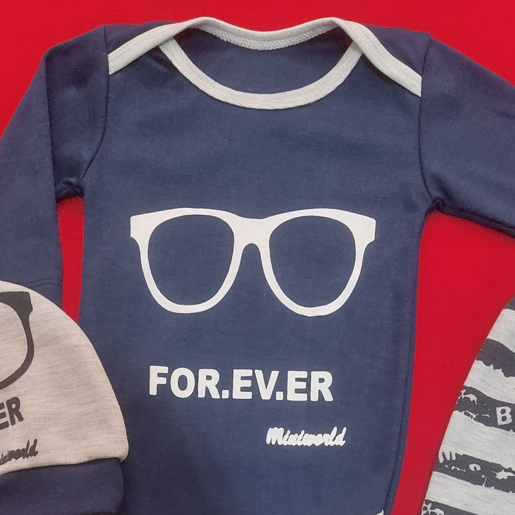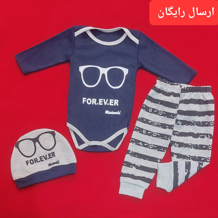 لباس نوزادی سه تکه طرح عینک آفتابی ( سایز 1،2و3)