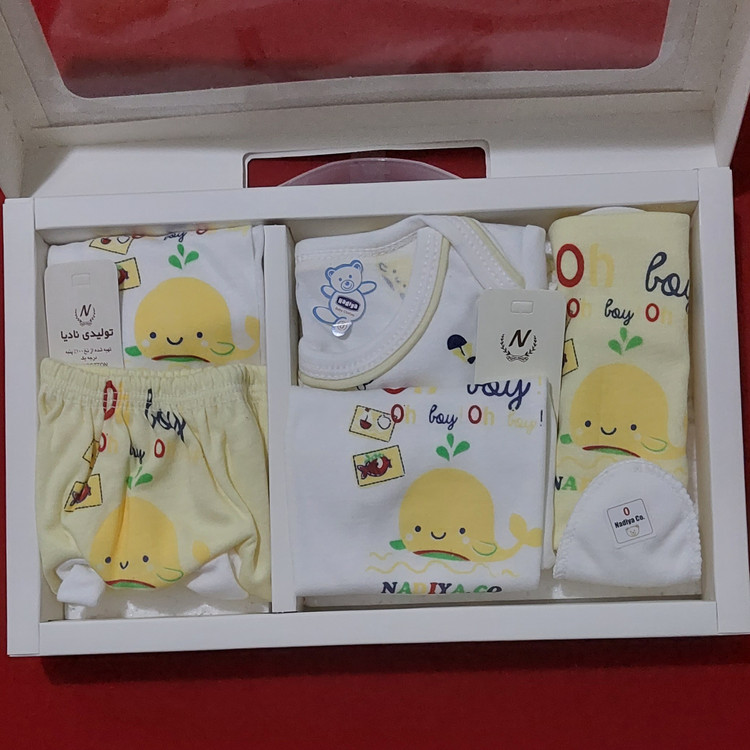 لباس نوزادی 5 تکه طرح نهنگ بامزه و زیبا ( سایز 0 ، 1 و2 )