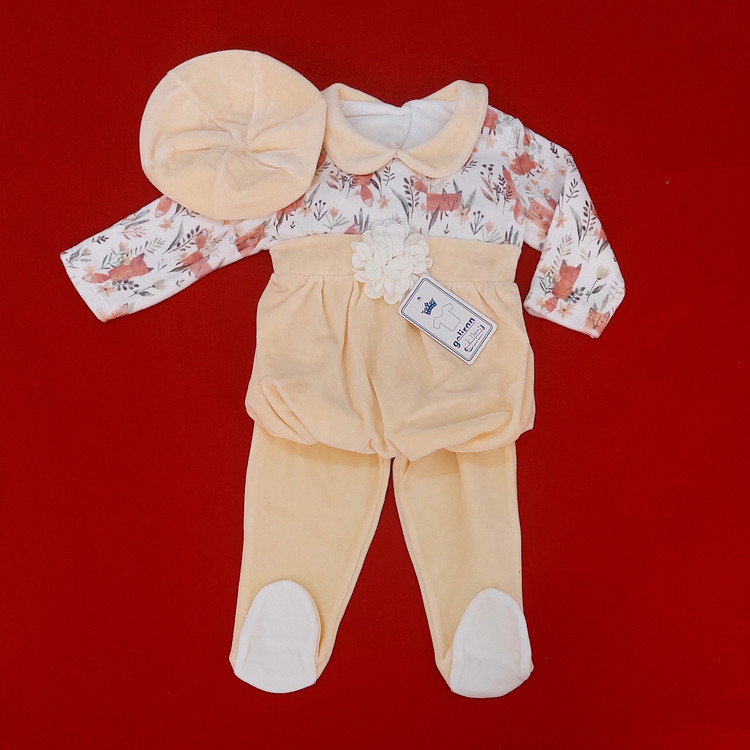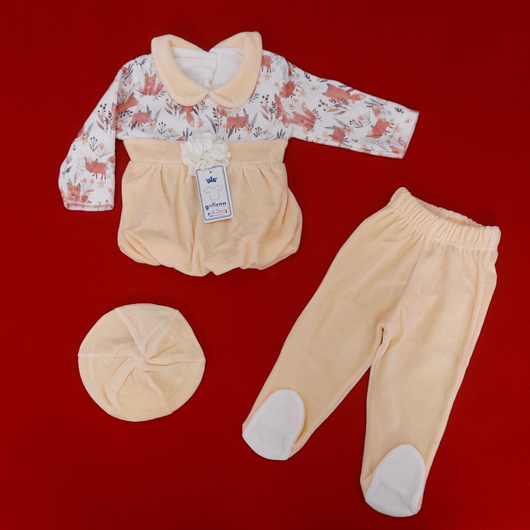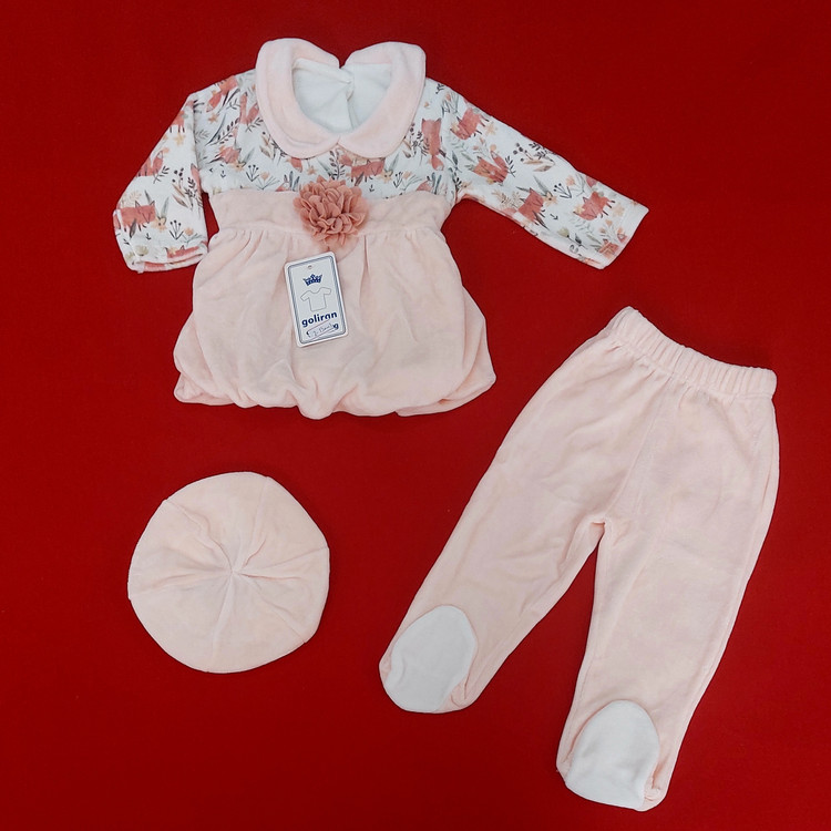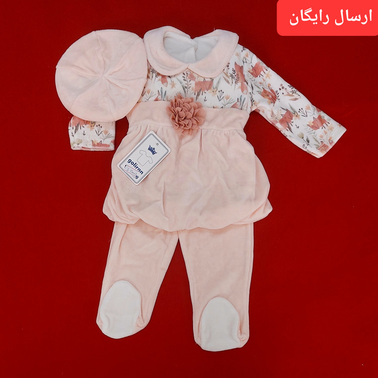 کاپشن نوزادی سه تکه دخترونه مدلی خاص و شیک سایز 1 ، 2 ، 3 و 4 در سه رنگ گلبهی ، کرم و طوسی ( با ارسال رایگان )
