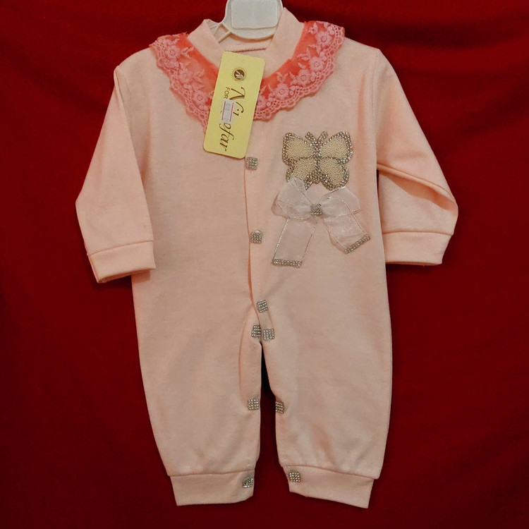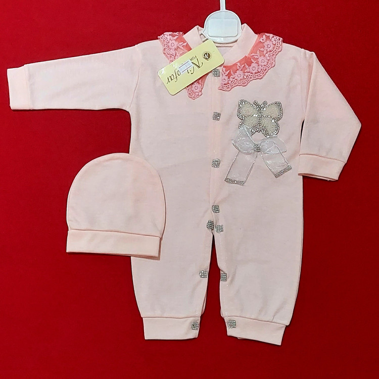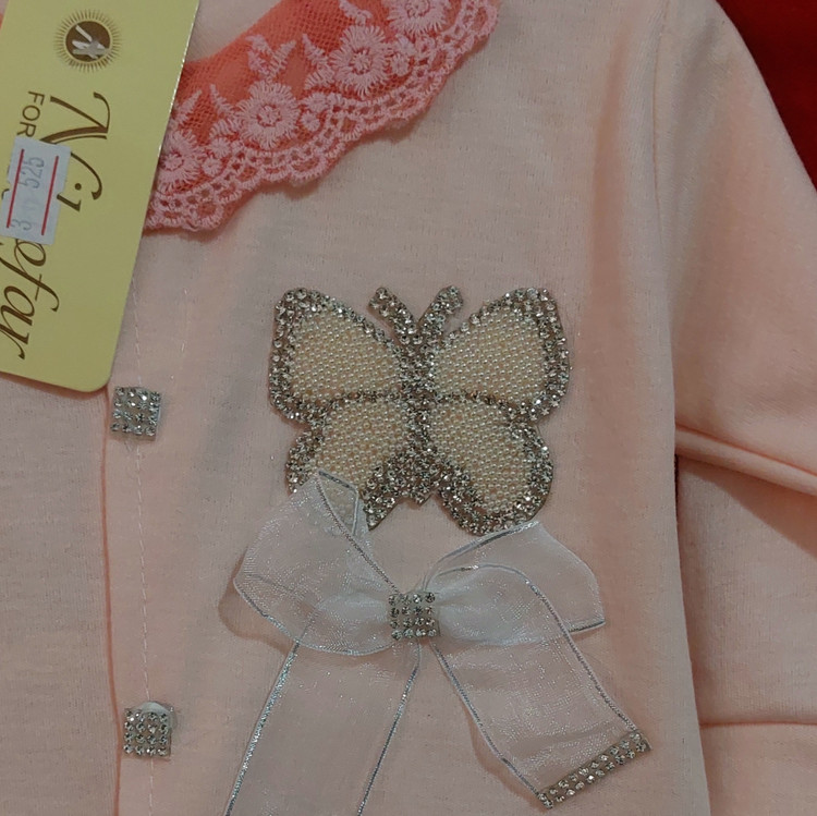 سرهمی نوزادی طرح پروانه گلبهی رنگ ( مناسب بدو تولد و بیمارستان )