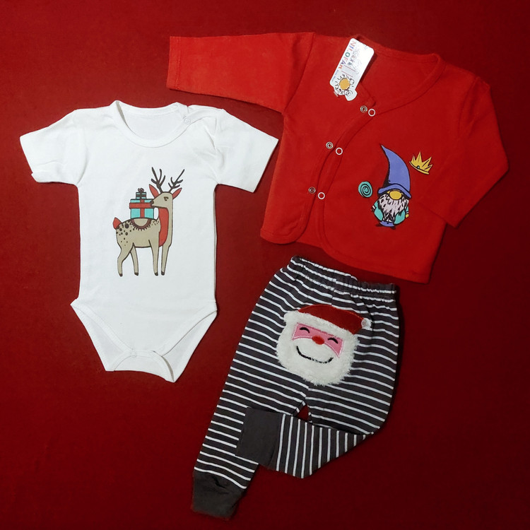 لباس نوزادی ۳ تکه با طرحی جذاب و خاص با کیفیت و شیک جنس : تمام پنبه در سایز ۱و ۲ سایز ۱ مناسب بدو تولد تا ۳ ماهگی سایز ۲ مناسب ۳ تا ۶ ماهگی با ارسال رایگان به سراسرکشور