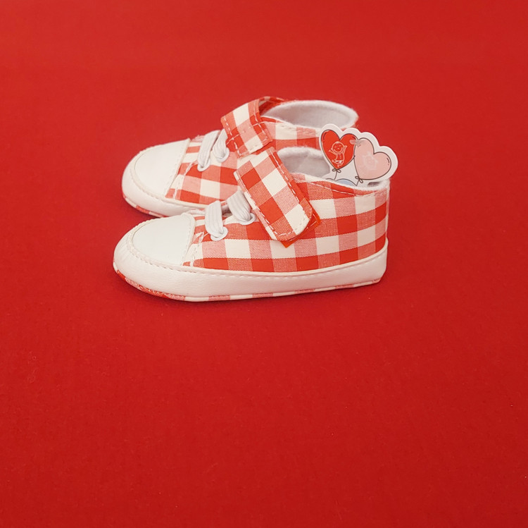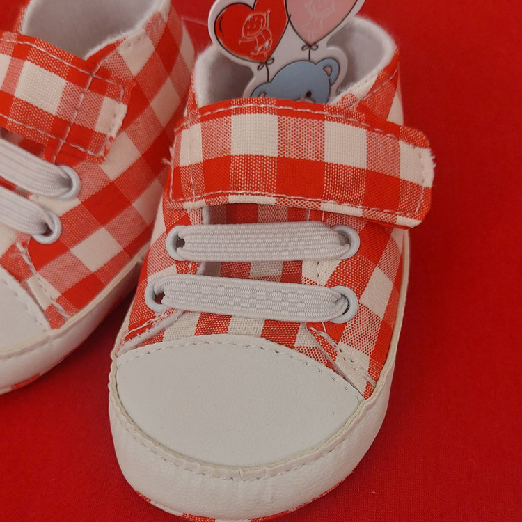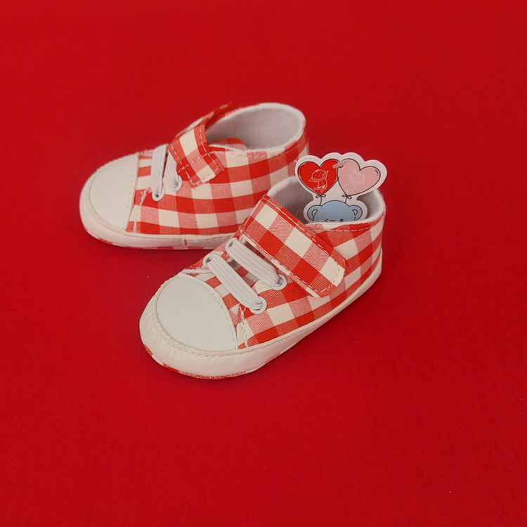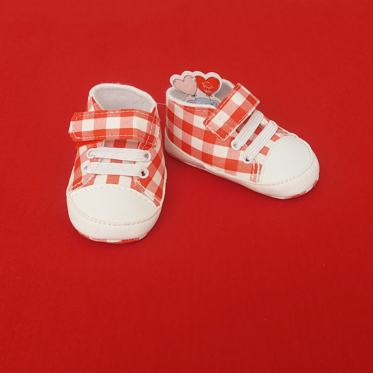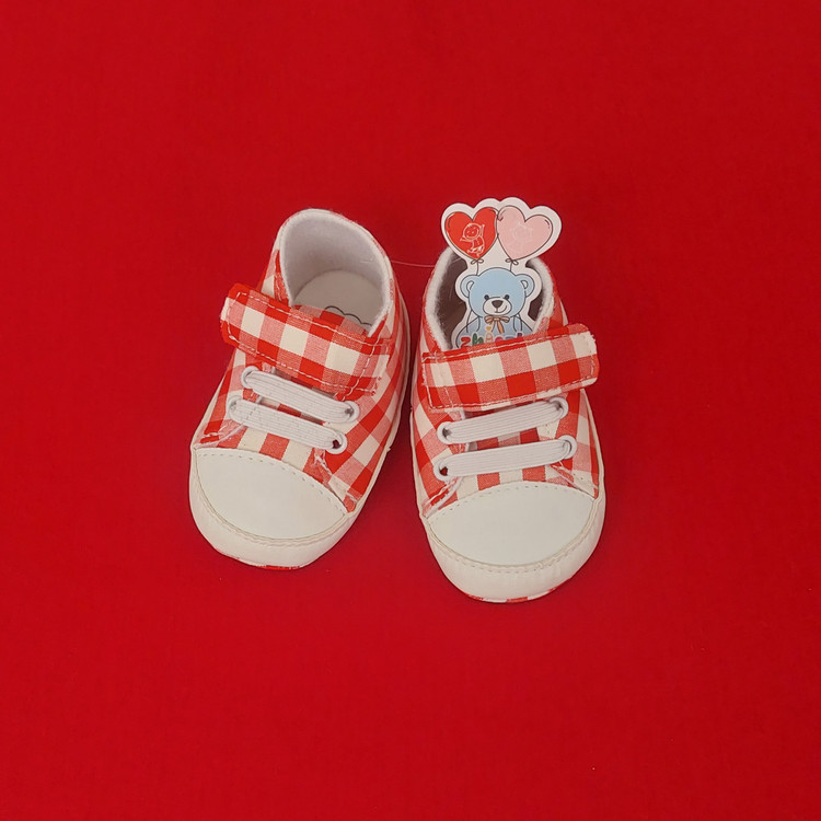 پاپوش نوزادی چهارخونه قرمز رنگ