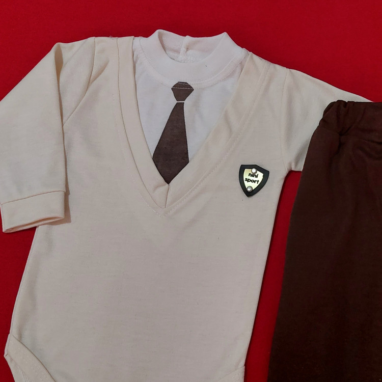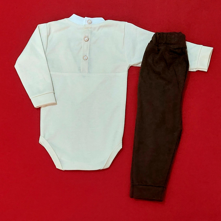 لباس نوزادی دو تکه پسرونه کرم سفید( سایز 1 ،2 و3 ) )