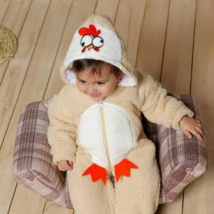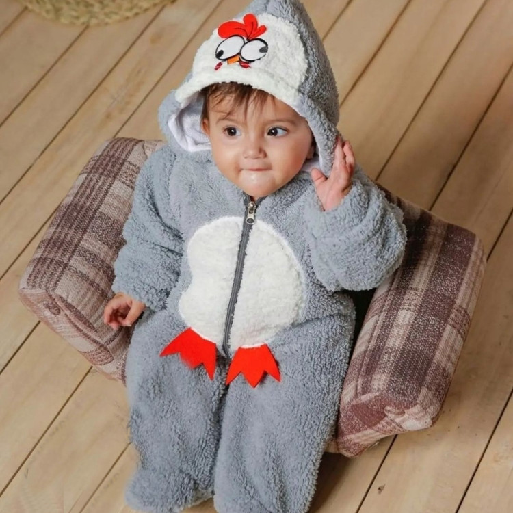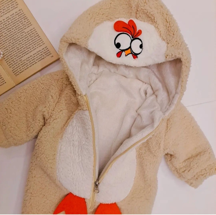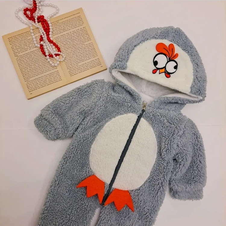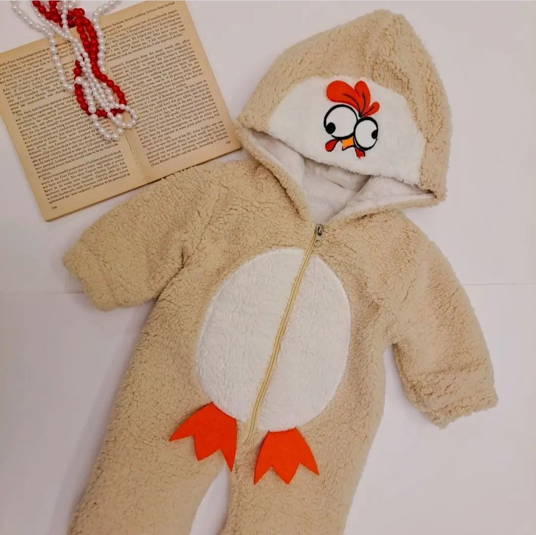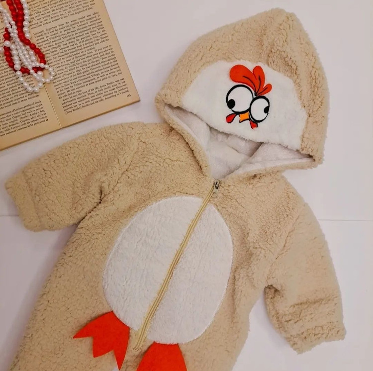 کاپشن سرهمی نوزادی تمام خز طرح خروس بامزه اسپرت مناسب دختر و پسر در دو رنگ طوسی و کرم ( با ارسال رایگان به سراسرکشور )