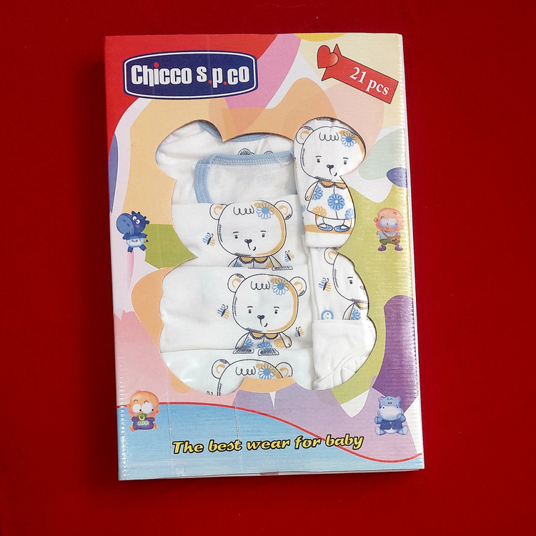 لباس نوزادی 19 تکه بیمارستانی مارک چیکو طرح خرس بامزه آبی سفید ( با ارسال رایگان به سراسرکشور )