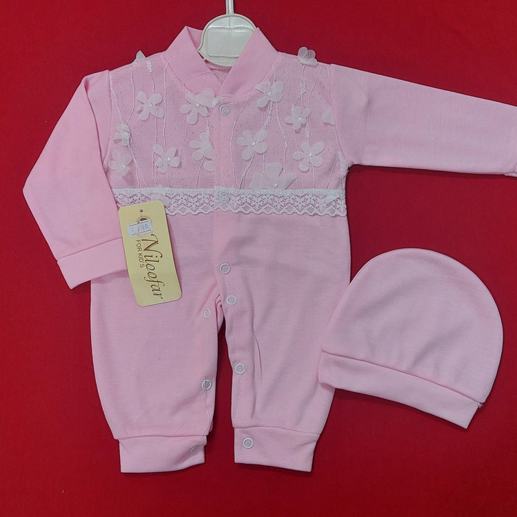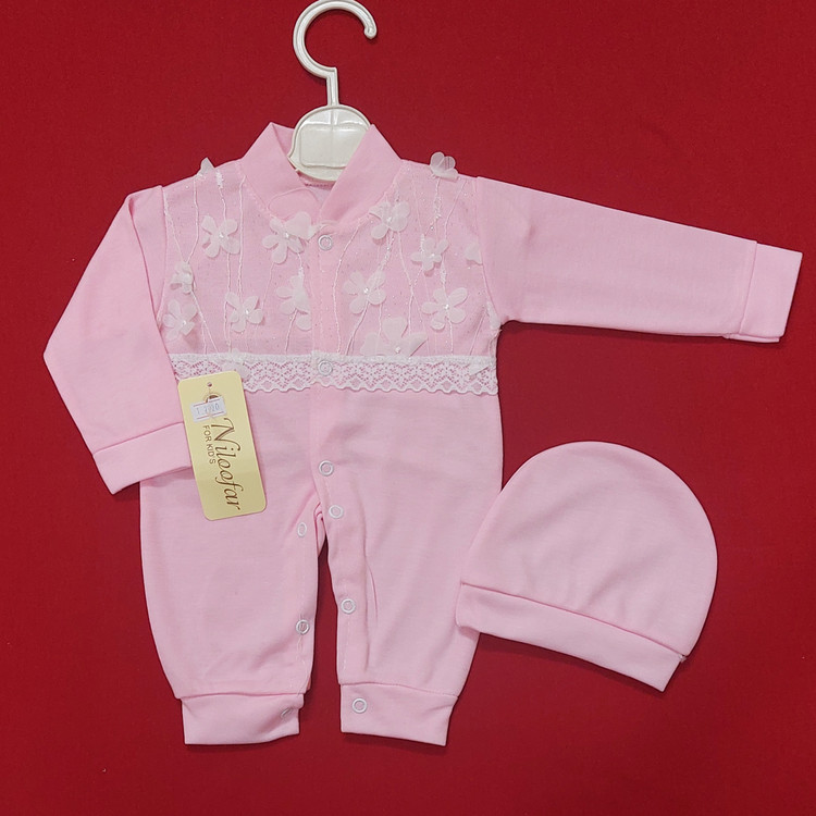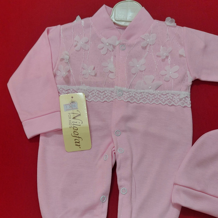 سرهمی نوزادی صورتی رنگ طرح گل گلی مناسب بیمارستان و بدو تولد ( با ارسال رایگان )