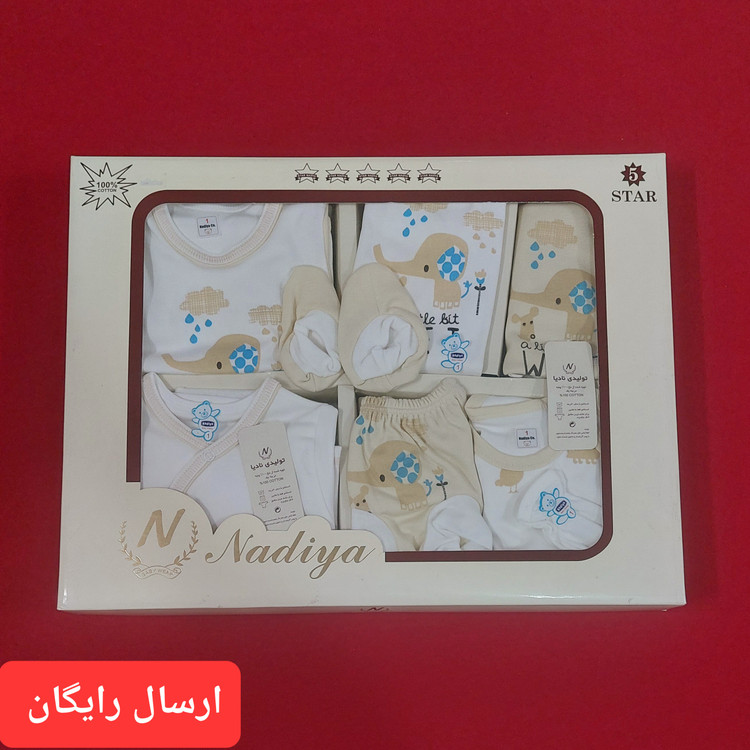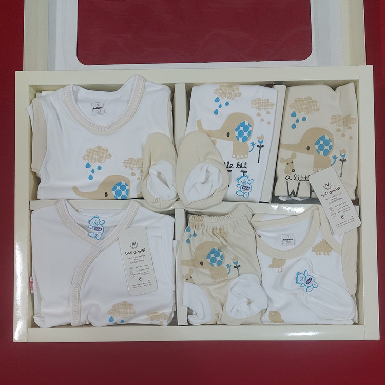 ست 19 تکه بیمارستانی نوزادی پنج ستاره قواره دار جنس تمام پنبه خالص ( با ارسال رایگان ) سایز 1 طرح فیل