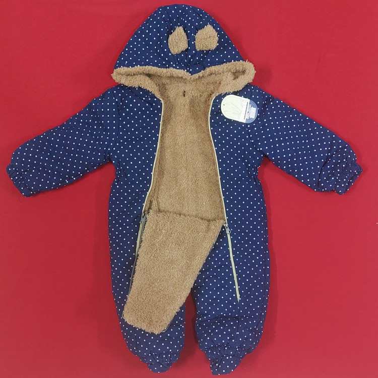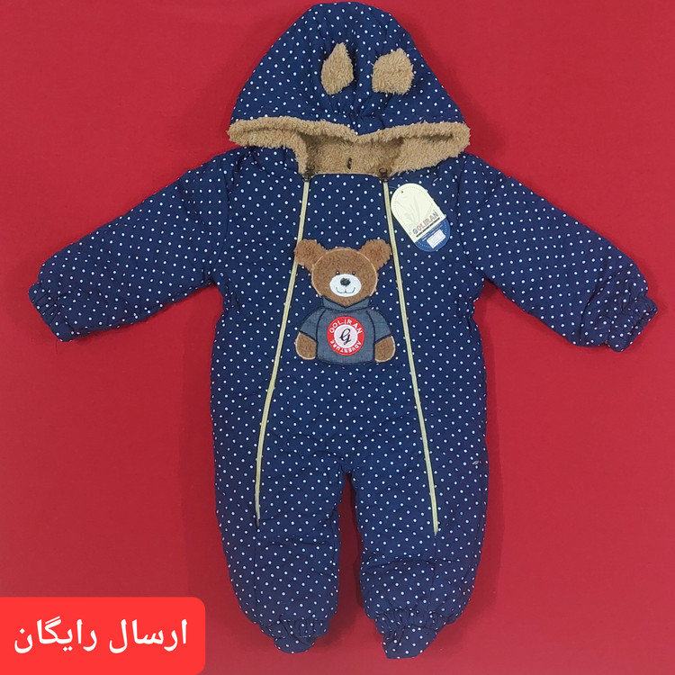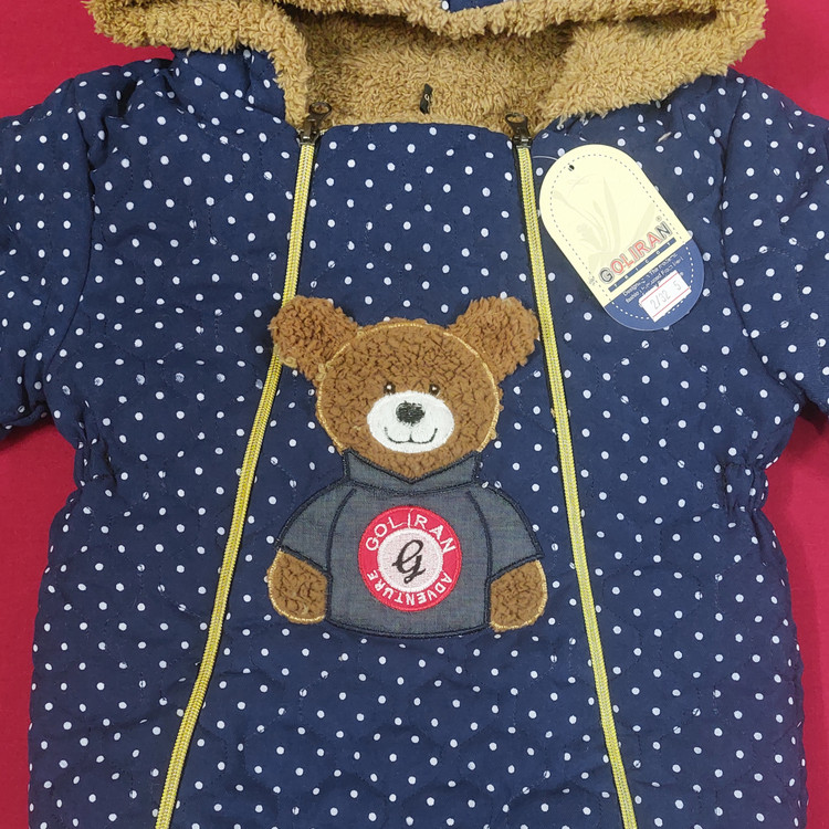 کاپشن سرهمی نوزادی طرح خرس سرمه ای رنگ خال خالی مناسب دختر و پسر سایز 5 و6 (با ارسال رایگان به سراسرکشور )