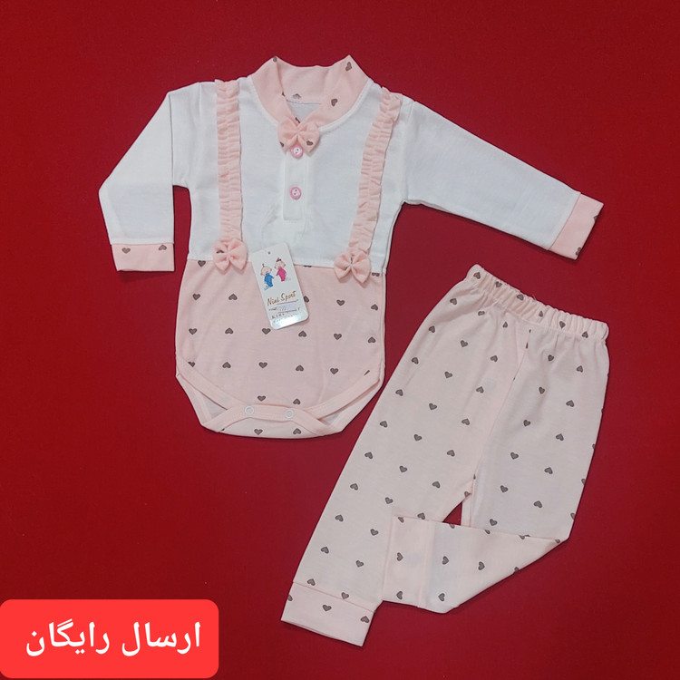 لباس نوزادی دو تکه دخترونه طرح پیشبندی قلب دار ( با ارسال رایگان به سراسرکشور ) سایز 1 ، 2 و 3