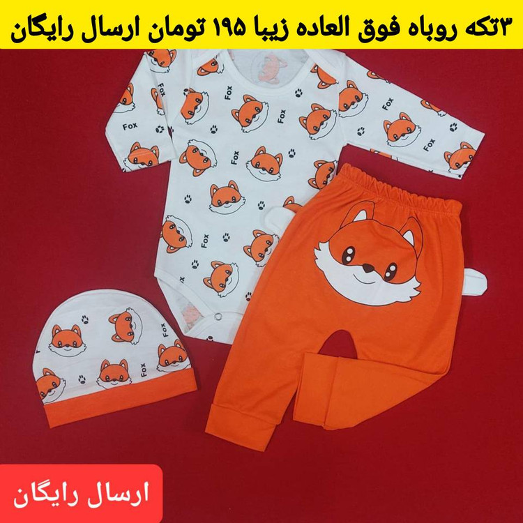 لباس نوزادی سه تکه طرح روباه بازیگوش سایز 1 ، 2 و3 ( با ارسال رایگان به سراسرکشور )