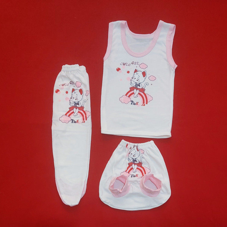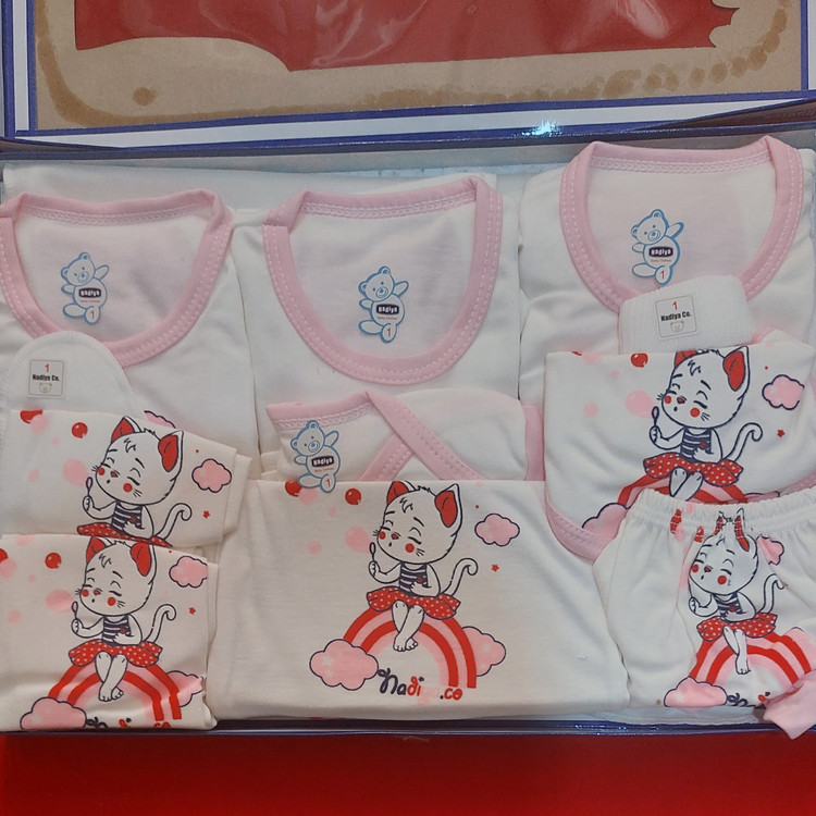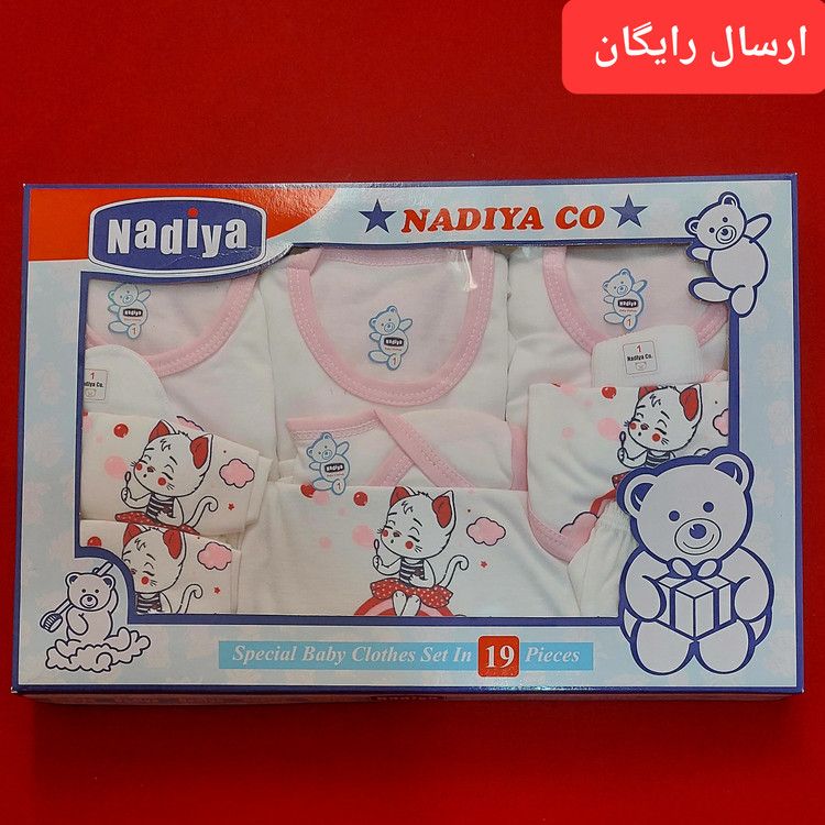ست 19 تکه نوزادی مناسب بدو تولد و بیمارستان طرح گربه ناز صورتی ( با ارسال رایگان به سراسرکشور )