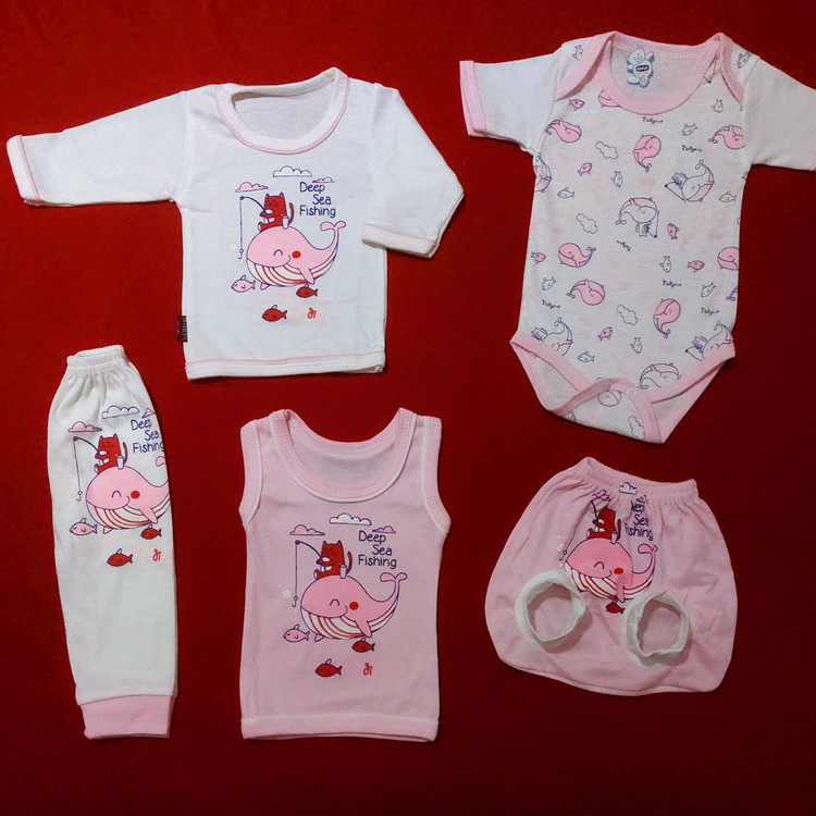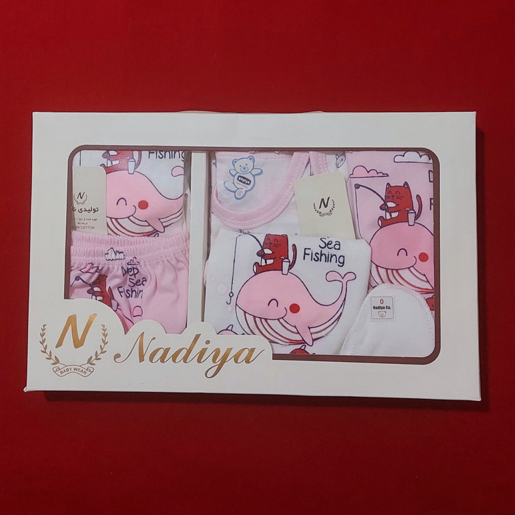 لباس نوزادی پنج تکه طرح نهنگ صورتی سایز 0 ، 1 و 2