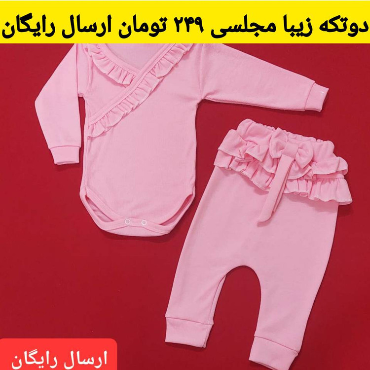 لباس نوزادی دو تکه شیک دخترونه صورتی رنگ ( سایز 1 ، 2 و 3 ) عیدانه با ارسال رایگان به سراسرکشور