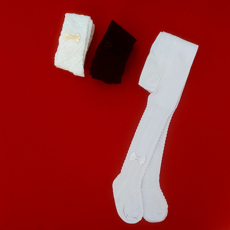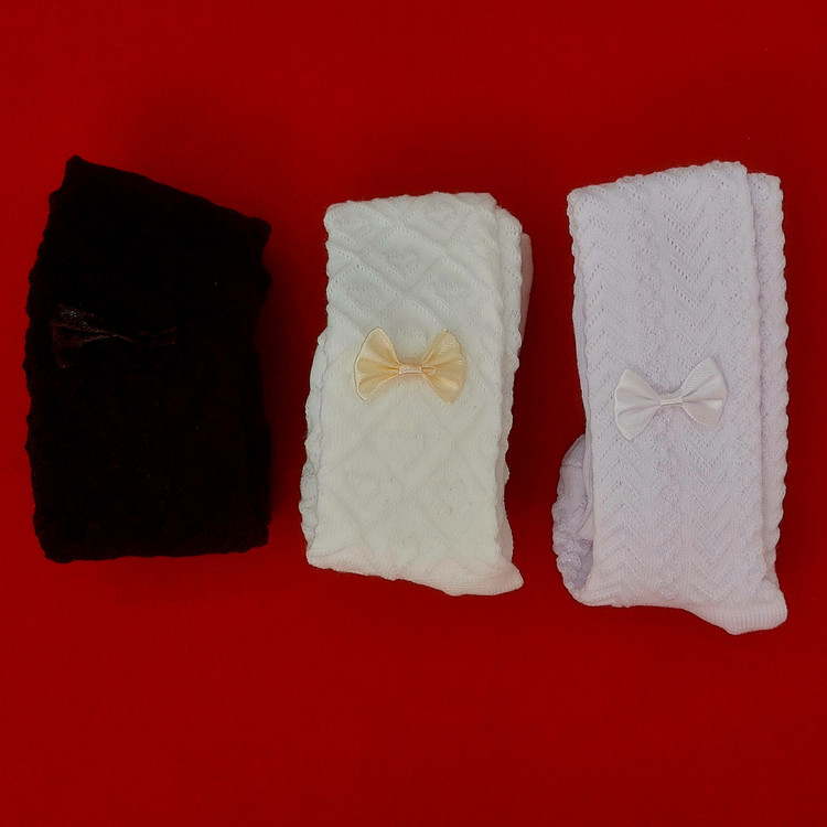 جوراب شلواری نوزادی در سه رنگ جذاب سفید ، شیری و مشکی طرح پاپیون