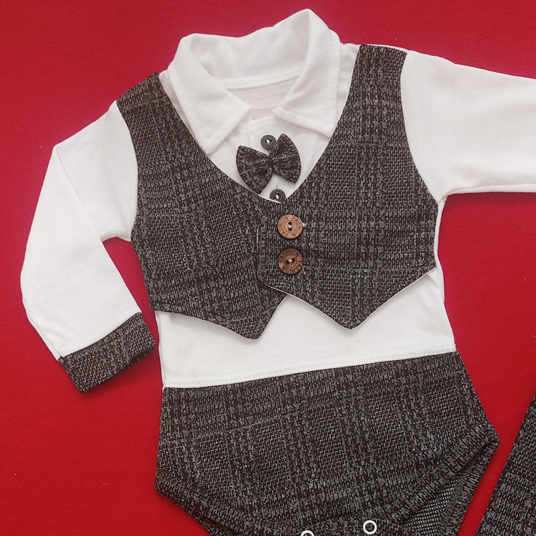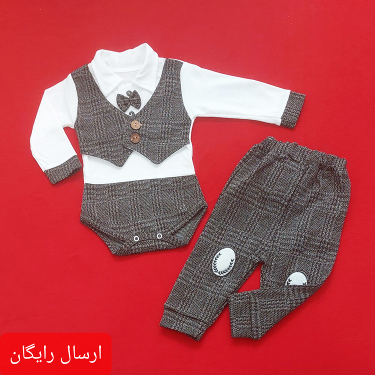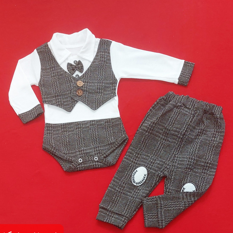 لباس نوزادی ۲ تکه شیک پسرونه طرح جلیقه ای