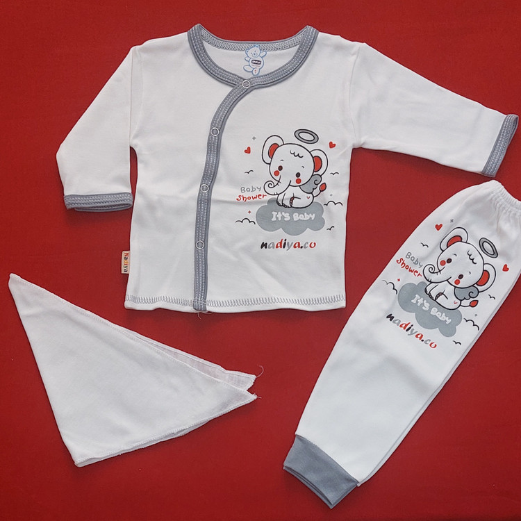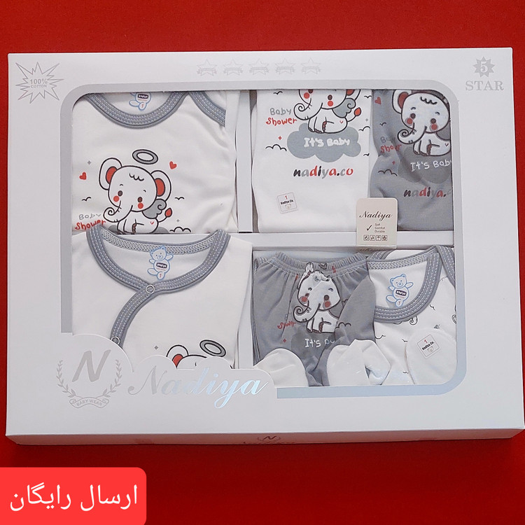 ست 19 تکه بیمارستانی نوزادی پنج ستاره قواره دار جنس تمام پنبه خالص ( با ارسال رایگان ) سایز 1 طرح فیل بالدار