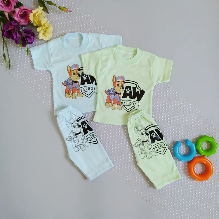 لباس نوزادی دو تکه بلوز شلوارک طرح سگ نگهبان در دو رنگ جذاب سبز و آبی سایز 1 ،2،3 و 4 ( با ارسال رایگان به سراسرکشور )
