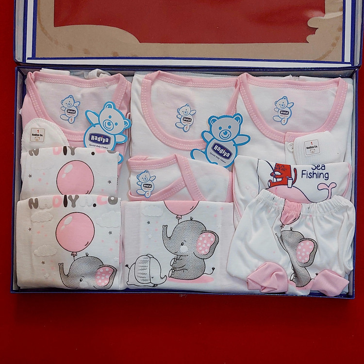 ست 19 تکه بیمارستانی نوزادی مناسب بدو تولد و بیمارستان طرح فیل و بادکنک ( با ارسال رایگان به سراسرکشور )