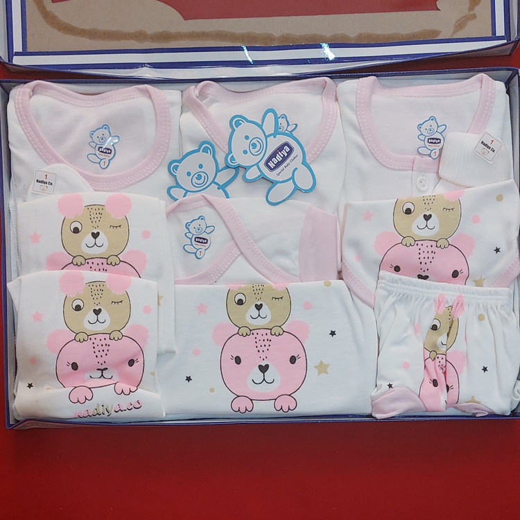 ست 19 تکه بیمارستانی نوزادی مناسب بدو تولد و بیمارستان طرح دوخرس مهربون صورتی ( با ارسال رایگان به سراسرکشور )