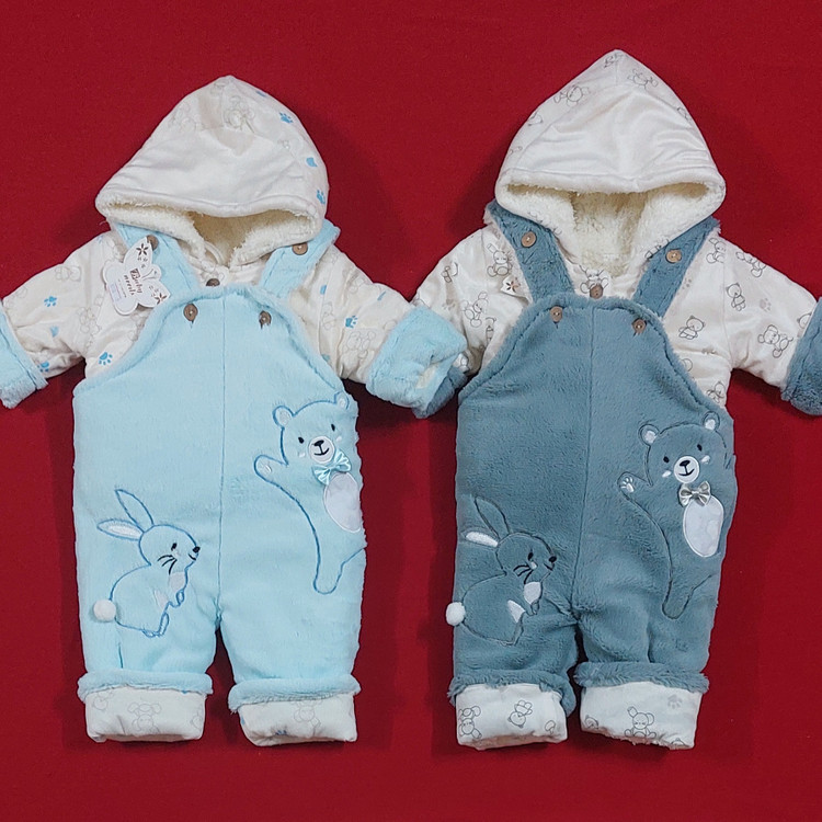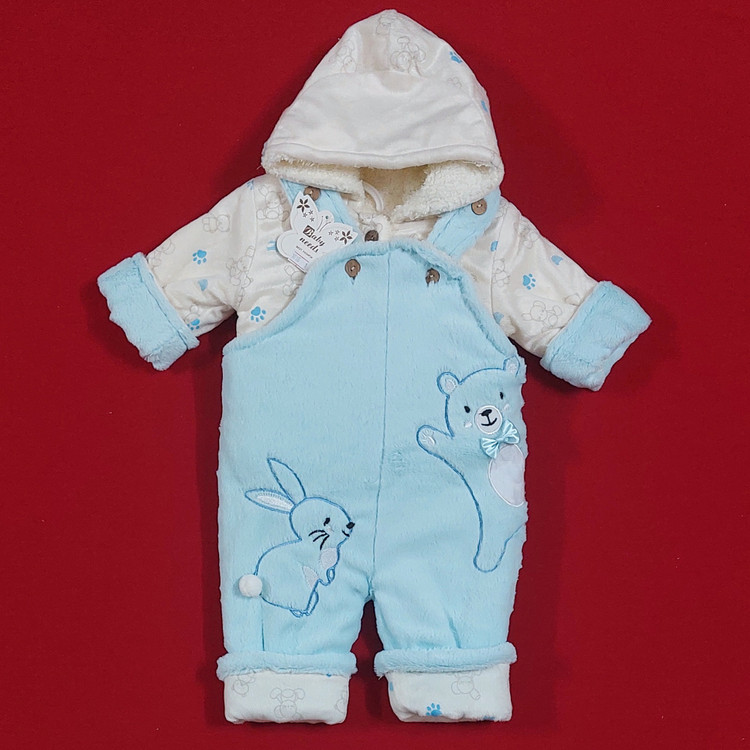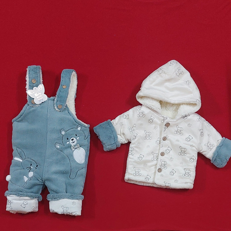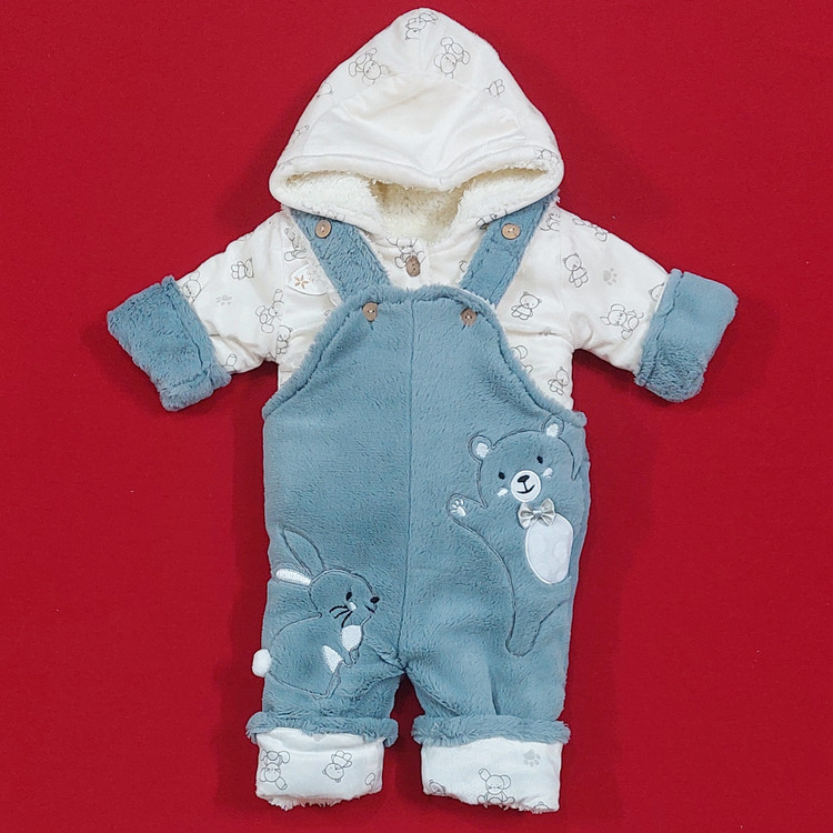 کاپشن سرهمی نوزادی دو تکه در رنگ های طوسی و آبی تمام خز ( سایز 1 و 2 ) با ارسال رایگان به سراسرکشور