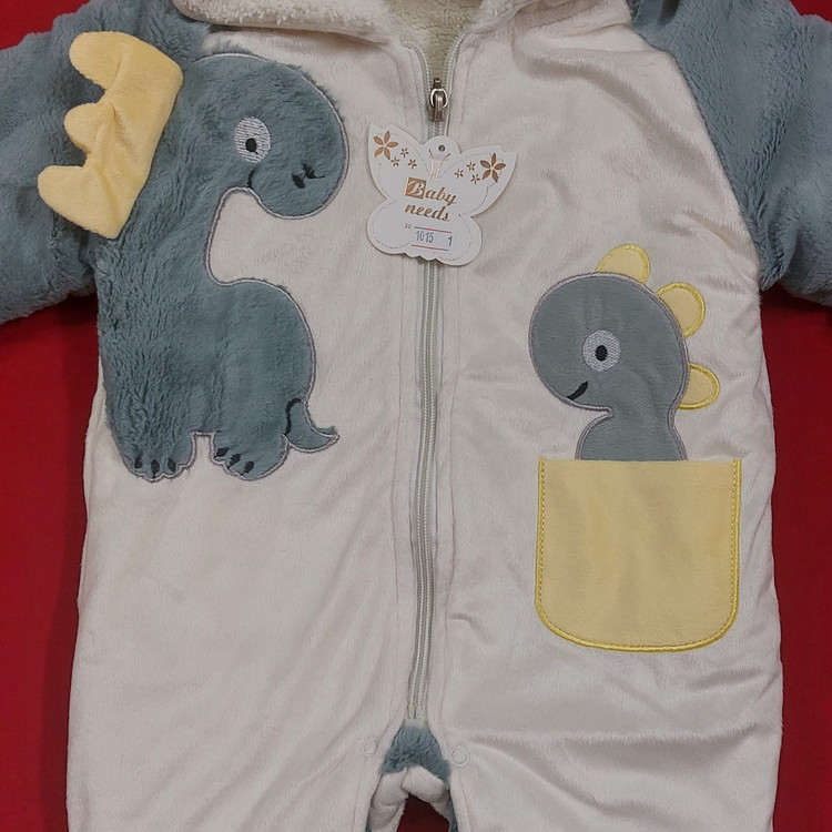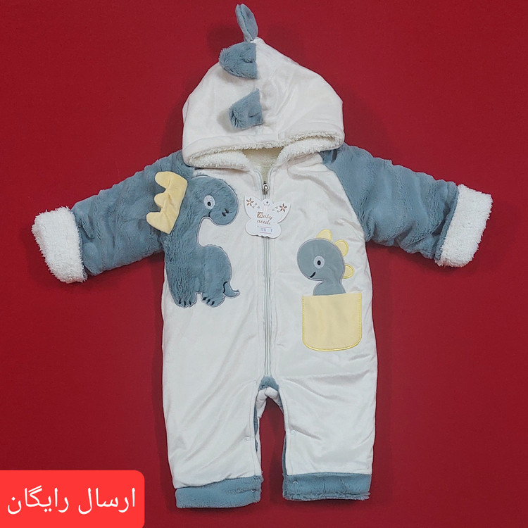 کاپشن سرهمی نوزادی تمام خز طرح خاص دایناسور سایز 1 و 2 ( با ارسال رایگان به سراسرکشور )