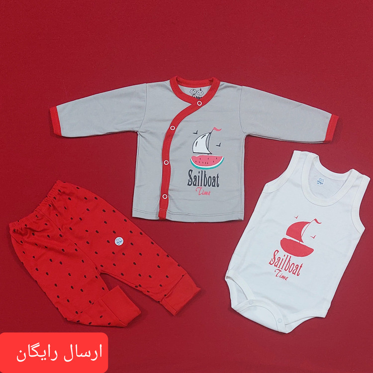 لباس یلدا نوزادی سه تکه طرح هندونه سایز 1 ، 2 و 3 ( با ارسال رایگان به سراسرکشور )
