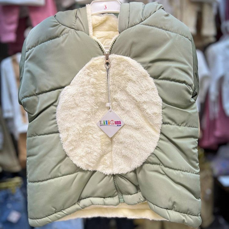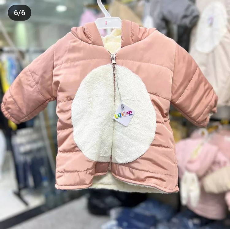 کاپشن تک نوزادی طرح خرگوش داخل خزدار در رنگ های قهوه ای ، سبز و گلبهی ( با ارسال رایگان به سراسرکشور ) سایز 2 و