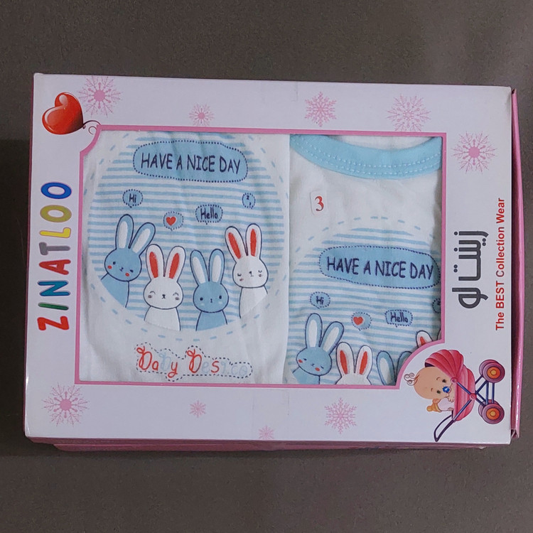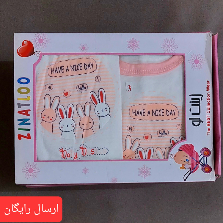 لباس نوزادی جعبه ای پنج تکه طرح خرگوش بازیگوش در دو رنگ جذاب گلبهی و آبی ( با ارسال رایگان به سراسرکشور )