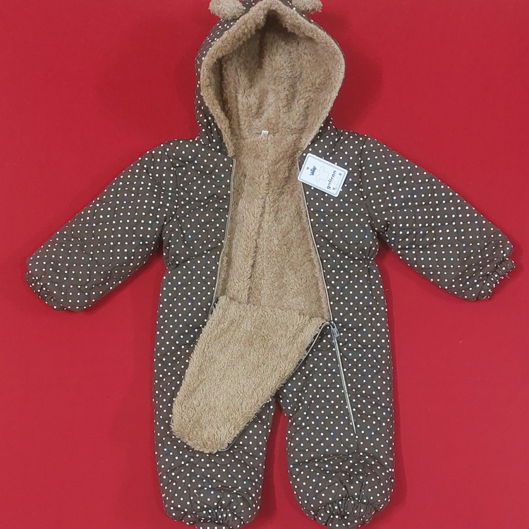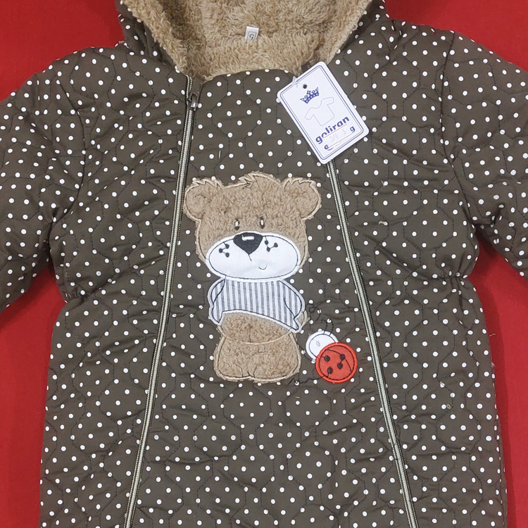 کاپشن سرهمی نوزادی شیک اسپرت طرح خرس وکفشدوزک قهوه ای در سایز های 5 و 6 ( با ارسال رایگان به سراسرکشور )