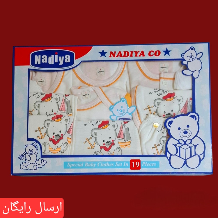 ست 19 تکه بیمارستانی نوزادی مناسب بدو تولد و بیمارستان طرح خرس و قایق نارنجی سفید( با ارسال رایگان به سراسرکشور )