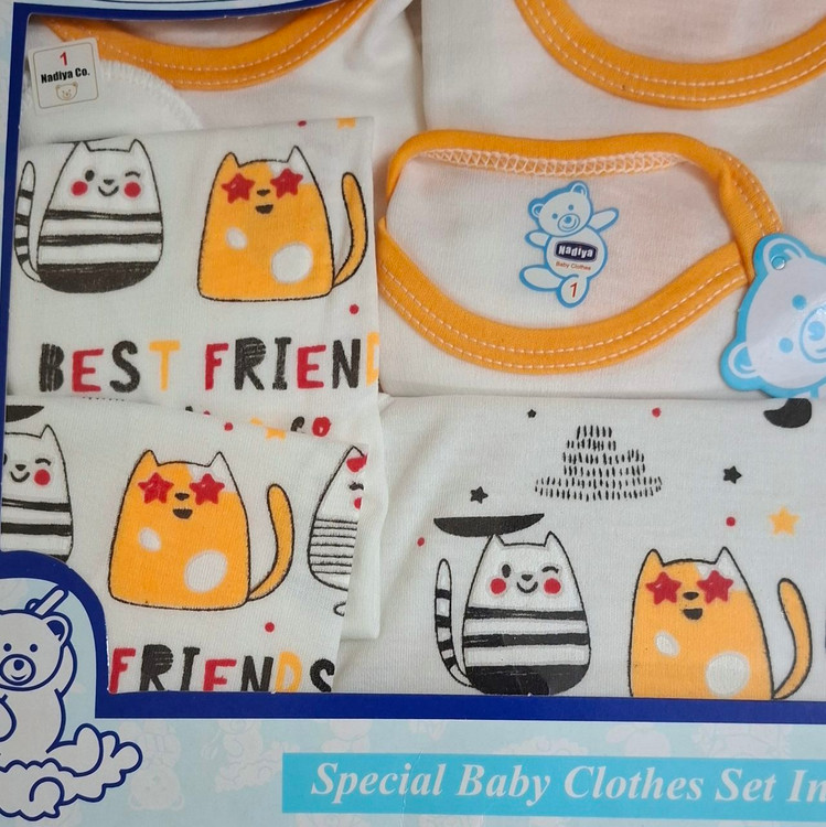 ست 19 تکه بیمارستانی نوزادی مناسب بدو تولد و بیمارستان طرح گربه های خاص نارنجی سفید( با ارسال رایگان به سراسرکشور )