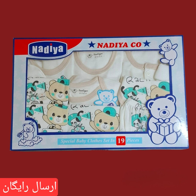 ست 19 تکه بیمارستانی نوزادی مناسب بدو تولد و بیمارستان طرح خرس و سگ بازیگوش کرم سفید( با ارسال رایگان به سراسرکشور )