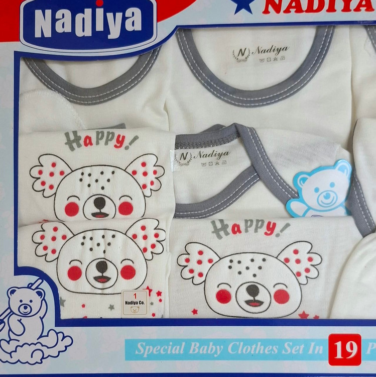 ست 19 تکه بیمارستانی نوزادی مناسب بدو تولد و بیمارستان طرح خرس خال خالی طوسی سفید( با ارسال رایگان به سراسرکشور )