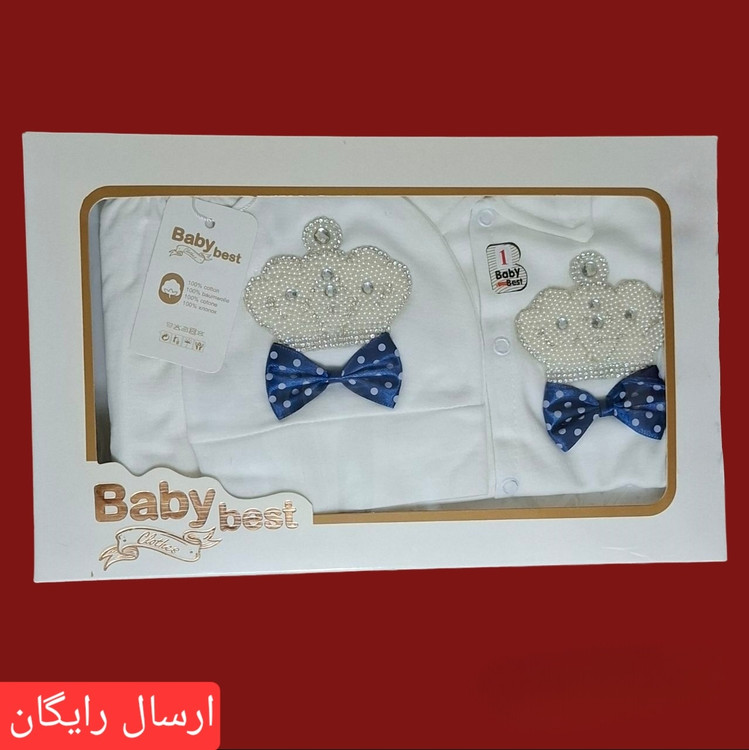 لباس نوزادی پنج تکه طرح تاج سرمه ای رنگ سایز 1 ،2 و 3 ( با ارسال رایگان به سراسرکشور )