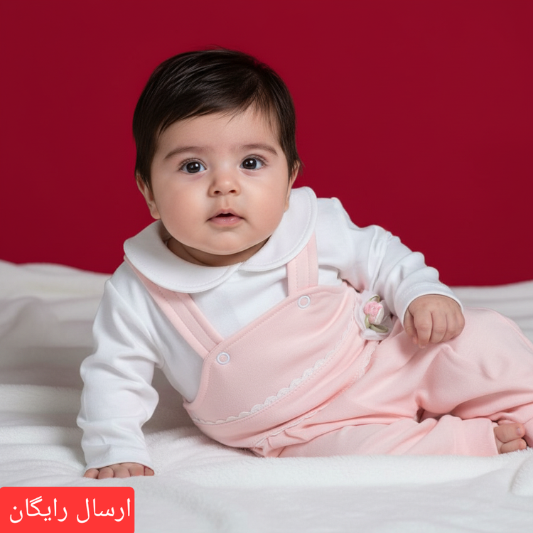 لباس نوزادی سرهمی نوزادی پیشبندی شیک دخترونه مناسب بیمارستان و بدو تولد (ارسال رایگان)