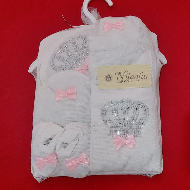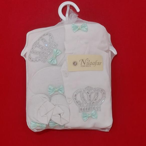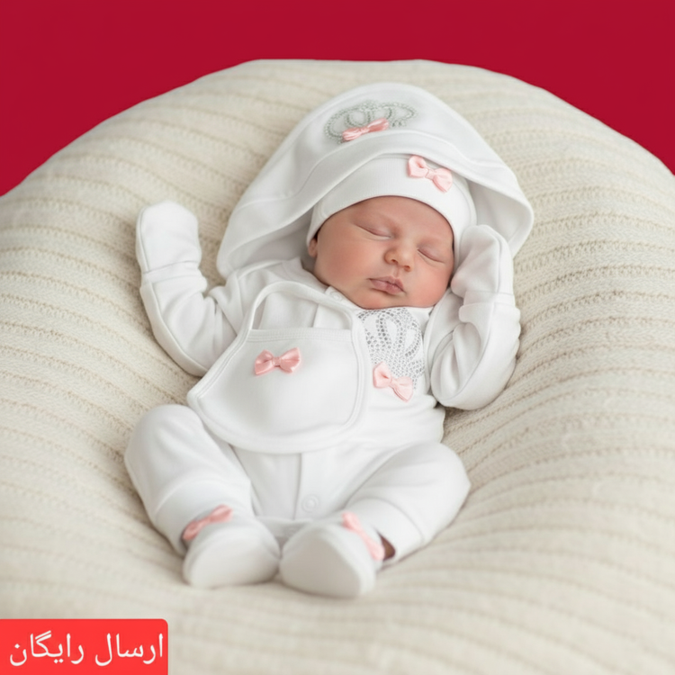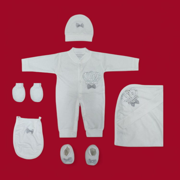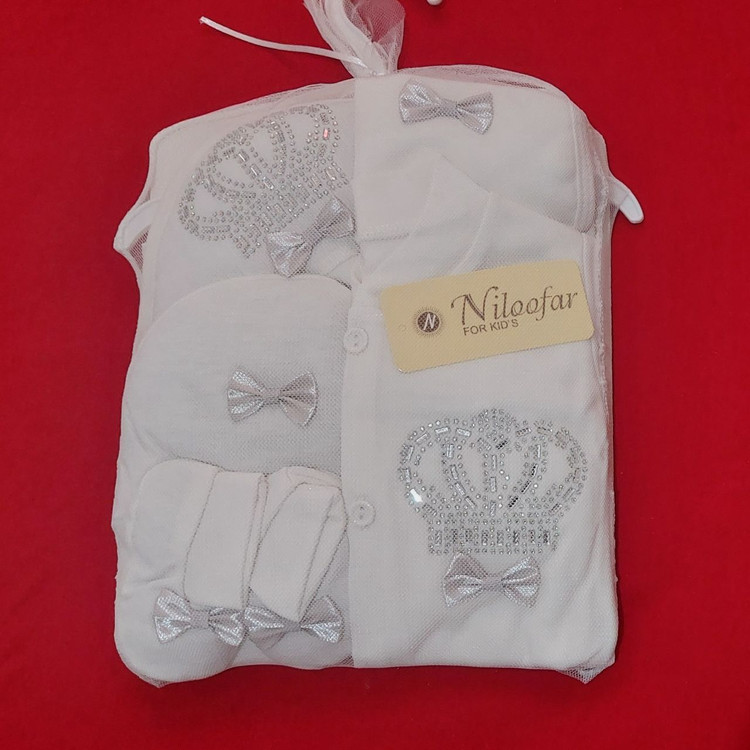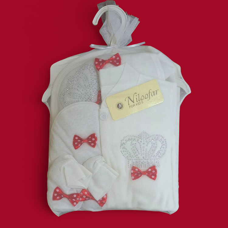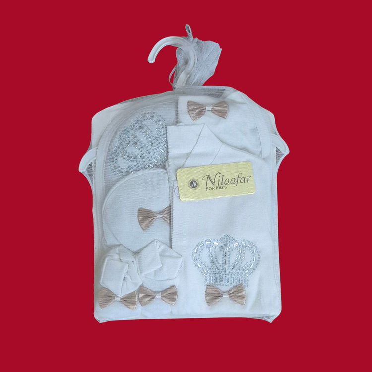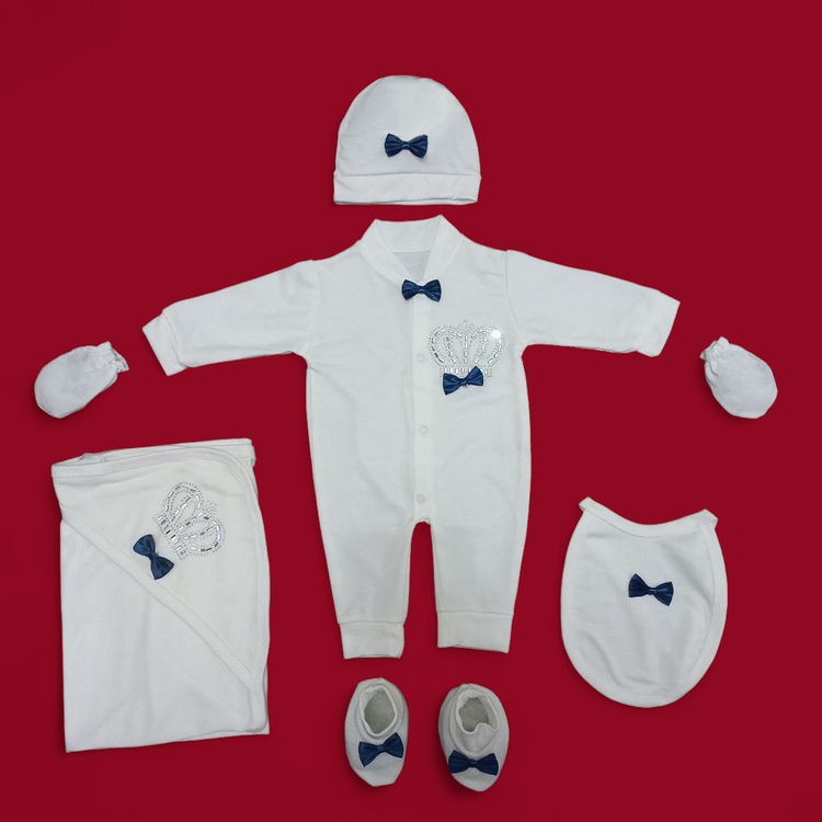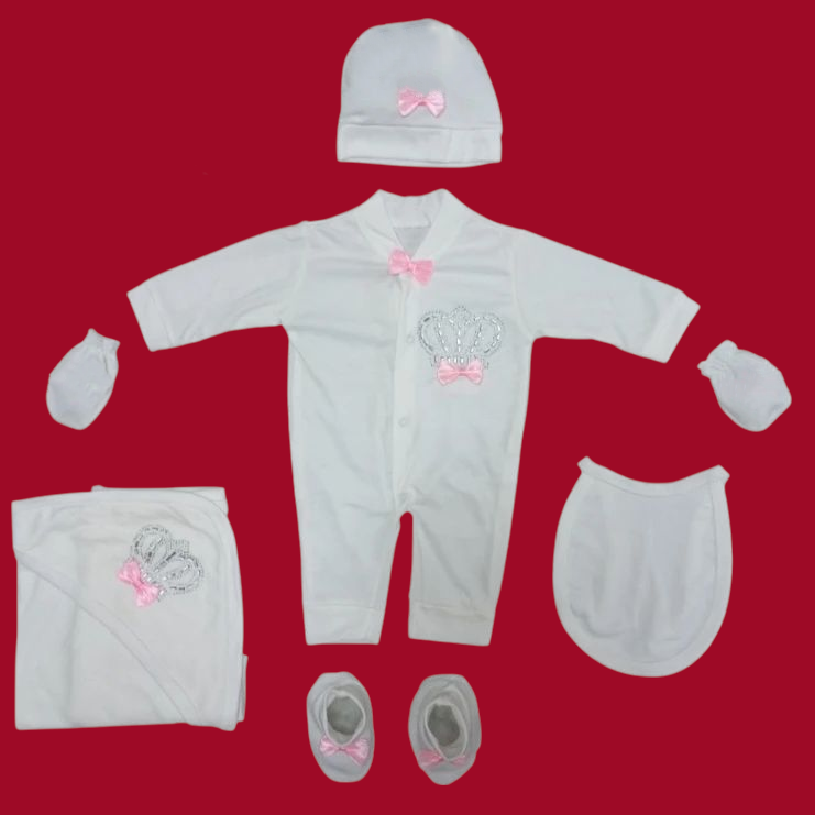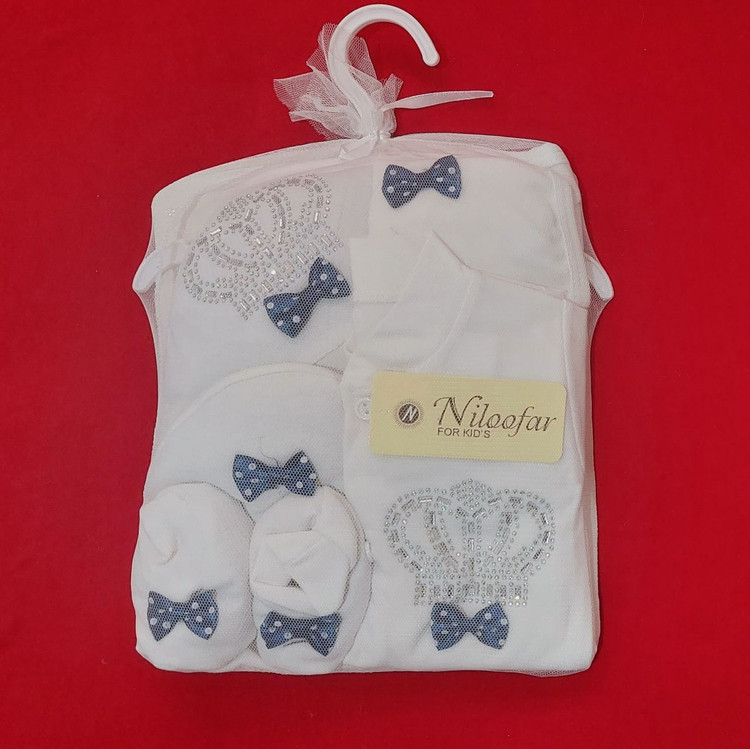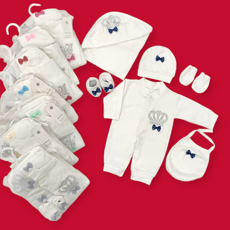 ست بیمارستانی نوزاد ۷ تکه طرح تاج پاپیون با رنگ های مختلف (ارسال رایگان)