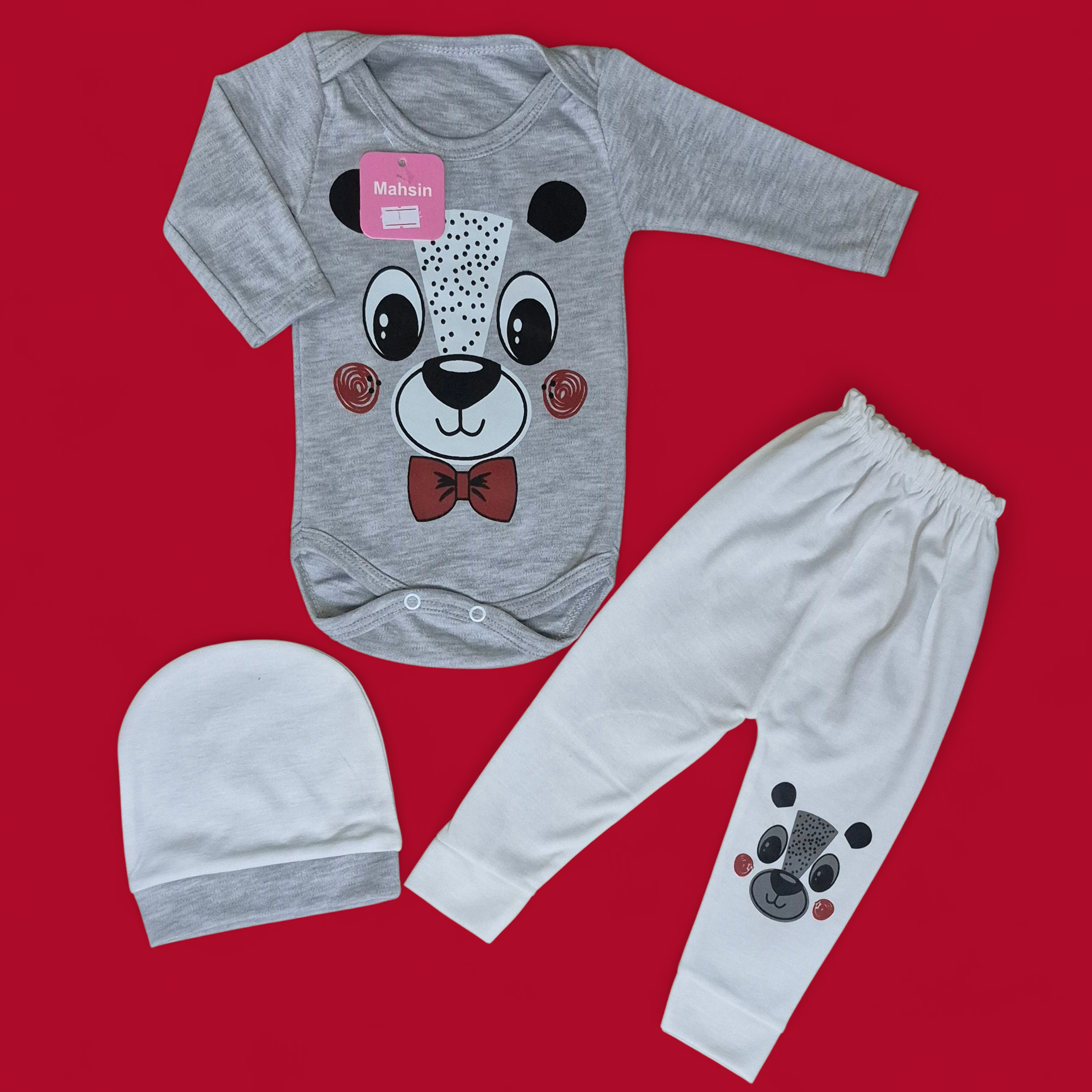 لباس نوزادی سه تکه طرح خرس بامزه سایز ۱ ،۲ و۳ (ارسال رایگان)