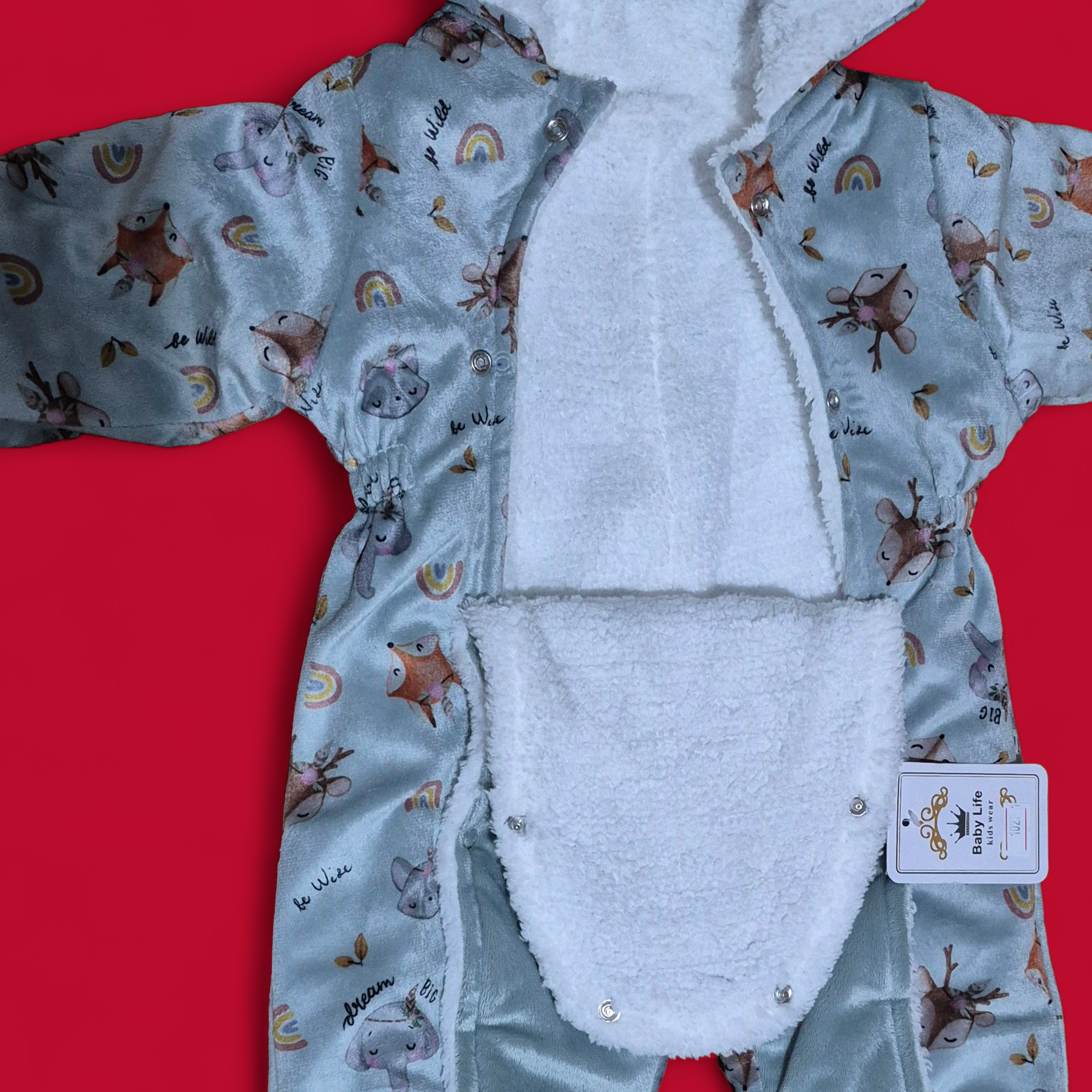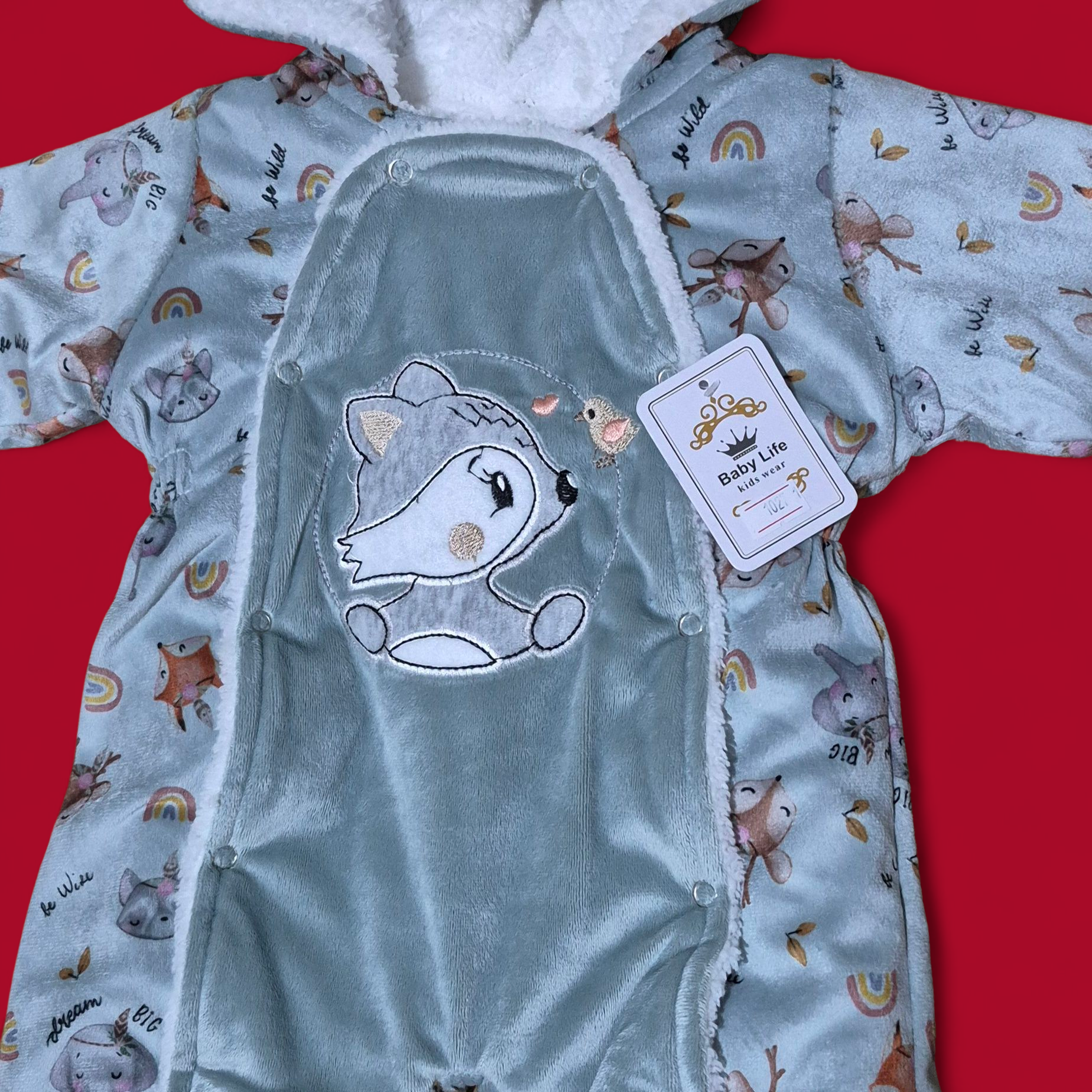 کاپشن سرهمی نوزادی مخمل طرح روباه سایز ۱ ،۲و۳ (ارسال رایگان)
