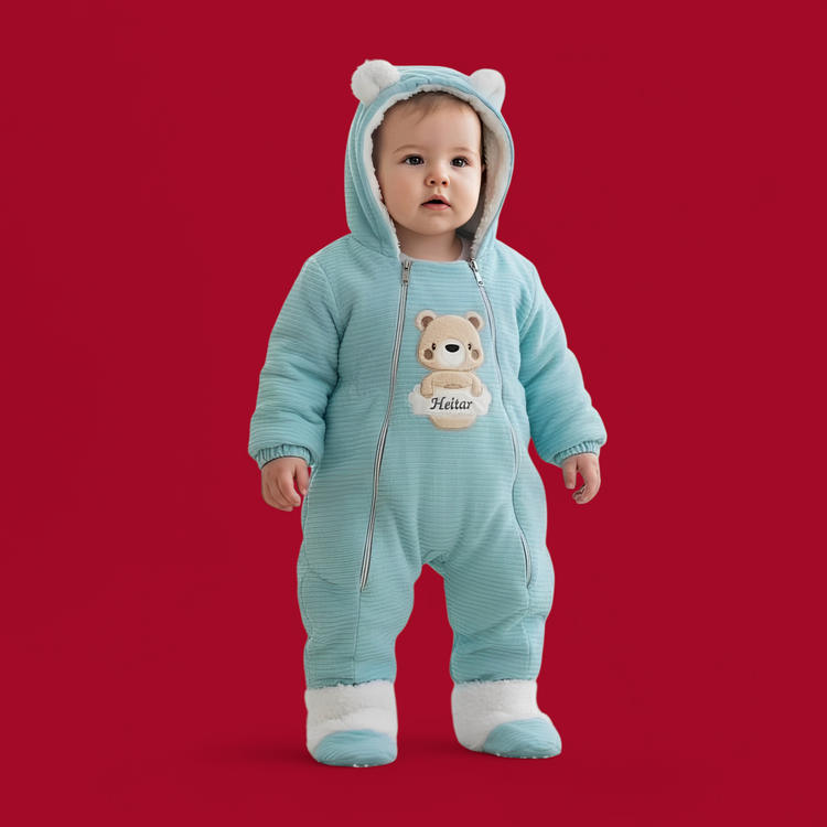 کاپشن سرهمی نوزادی همراه پاپوش جنس مخمل سایز 1 و2 رنگ آبی و سبز