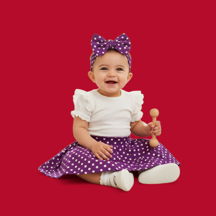 دامن دخترانه همراه تل خال خالی شیک و زیبا مناسب یک تا دو سالگی ( ارسال رایگان )