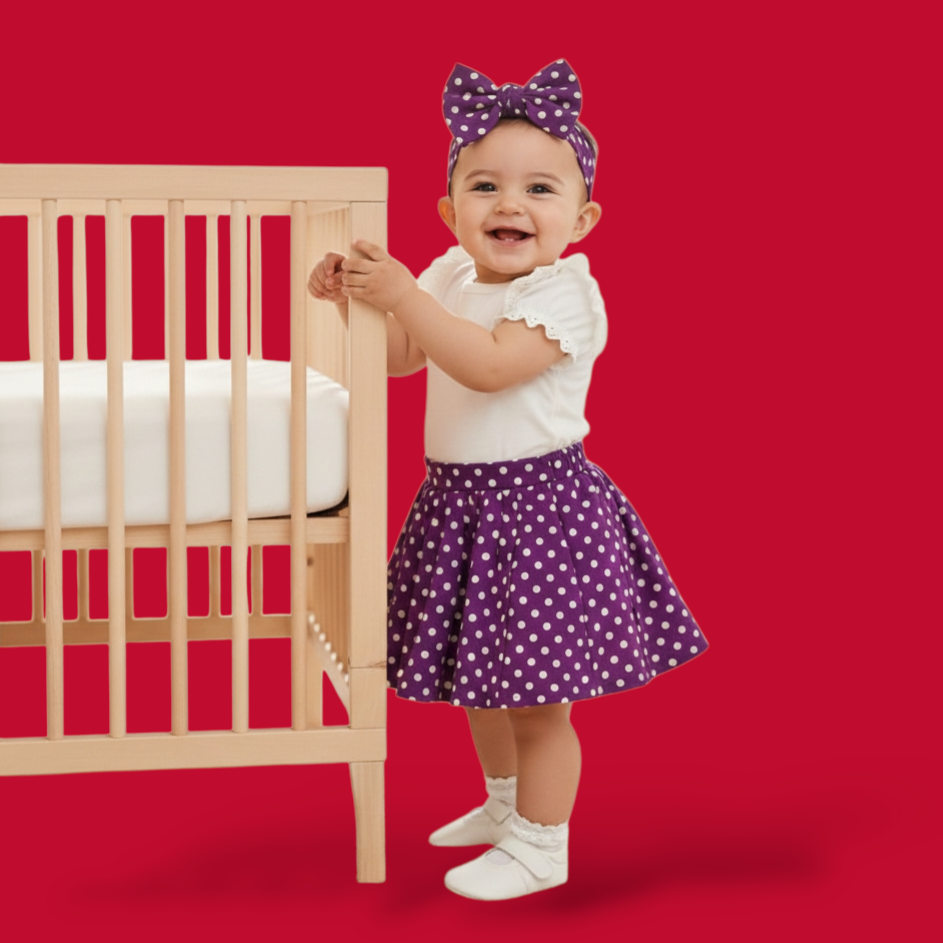 دامن دخترانه همراه تل خال خالی شیک و زیبا مناسب یک تا دو سالگی ( ارسال رایگان )