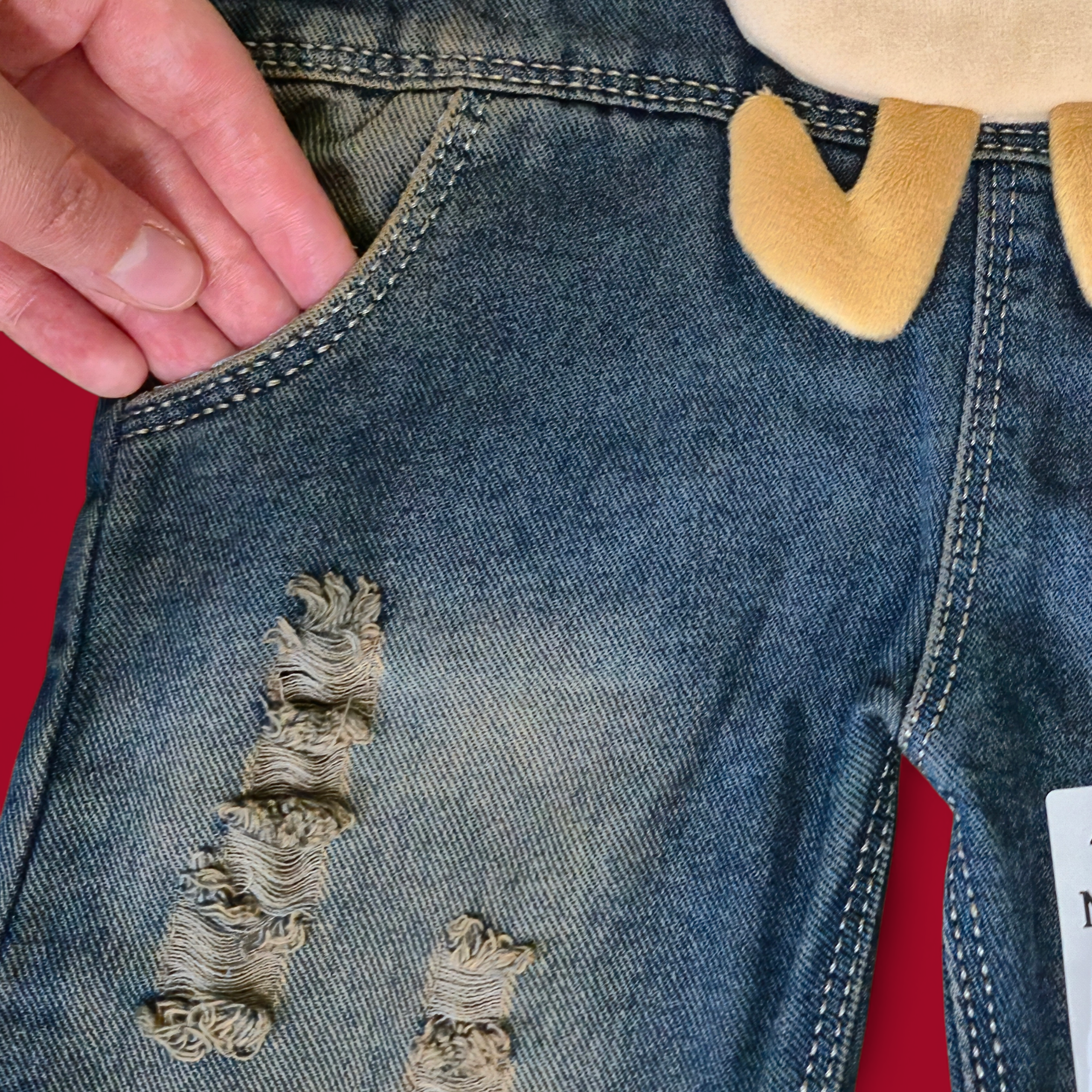 بیلر نوزادی جین باکیفیت و شیک (سرهمی پیشبندی) طرح سگ مهربون با ارسال رایگان سایز ۱،۲،۳