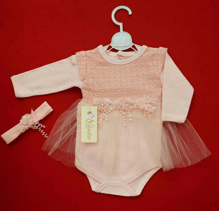 لباس نوزادی مجلسی شکوفه دار گلبهی رنگ ( سایز 1 و2 )