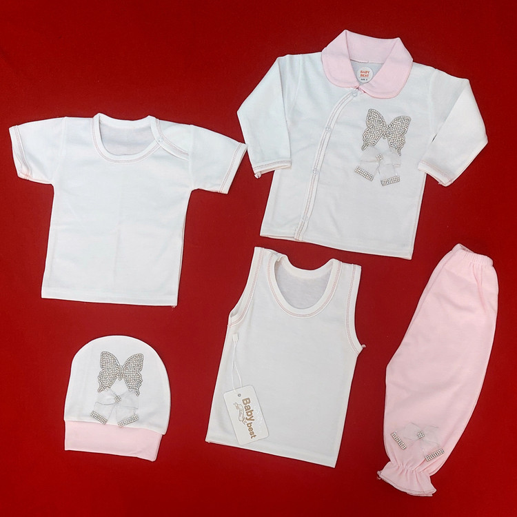 لباس نوزادی پنج تکه دخترانه طرح پروانه سایز 0 1 و 2