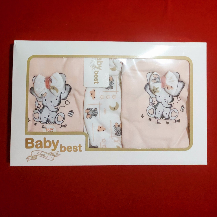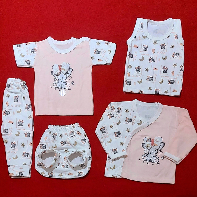 لباس نوزادی پنج تیکه طرح فیل ( سایز 0 , 1 , 2 )